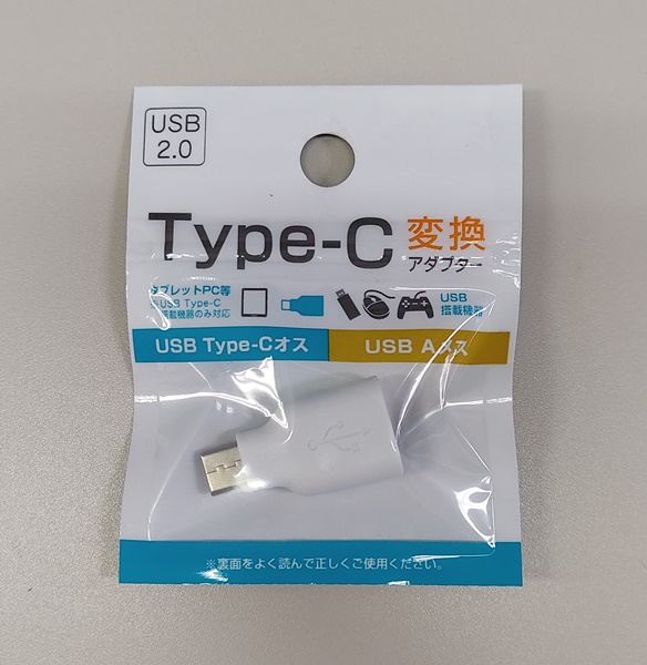 セリアにて購入。USB Type-Cオス – Type-AメスのOTG対応変換コネクタ。こちらでUSBキーボードを接続。